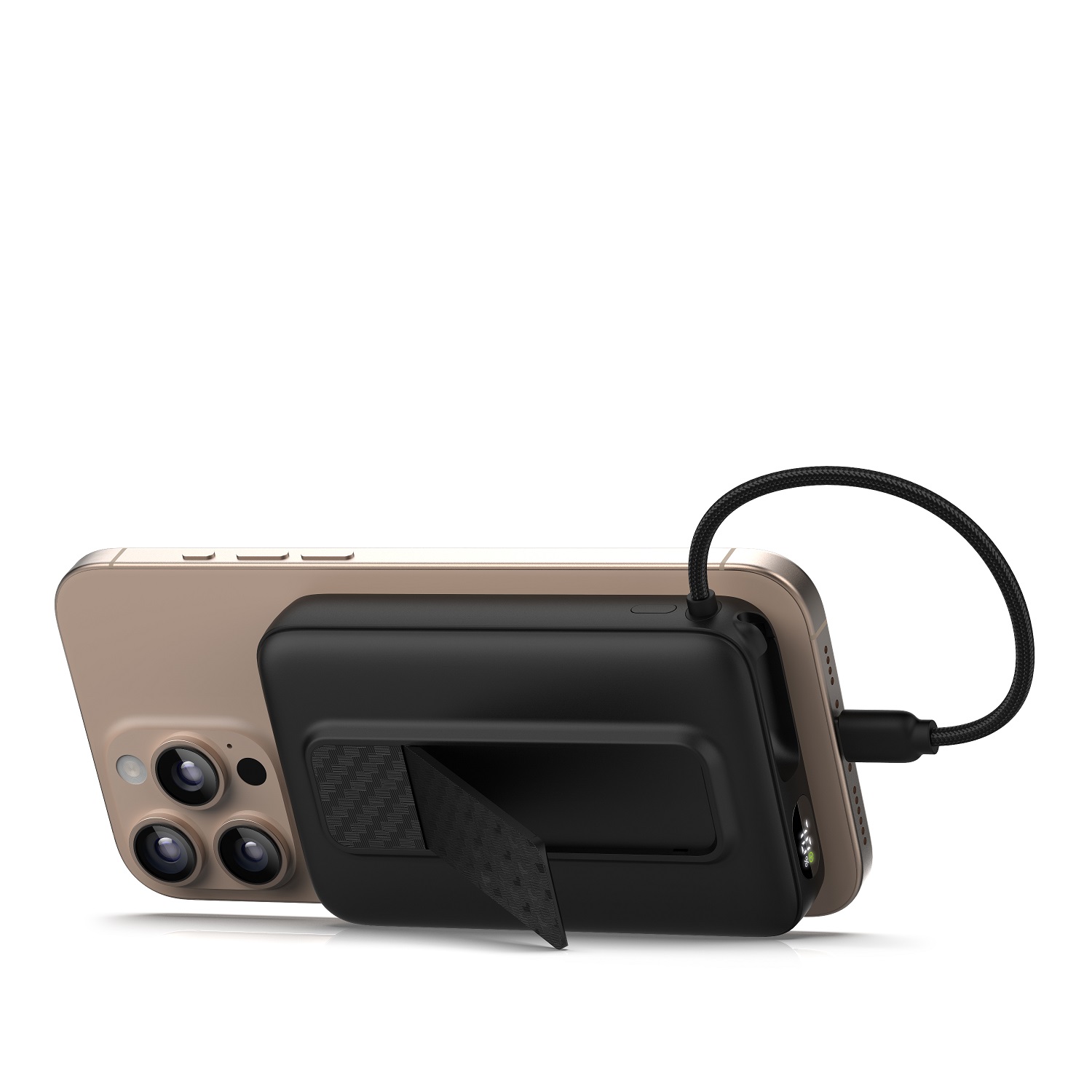 Lehké a odolné tělo je ideální na cesty, do práce i pro každodenní používání. Součástí je vestavěný kabel USB-C a kovový kroužek pro podporu MagSafe u telefonů bez magnetického uchycení.
