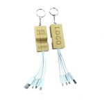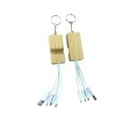 Bambusový EKO přívěsek na klíče s konektory Micro USB, USB-C a Lightning Vám poslouží zároveň jako stojánek na mobil.