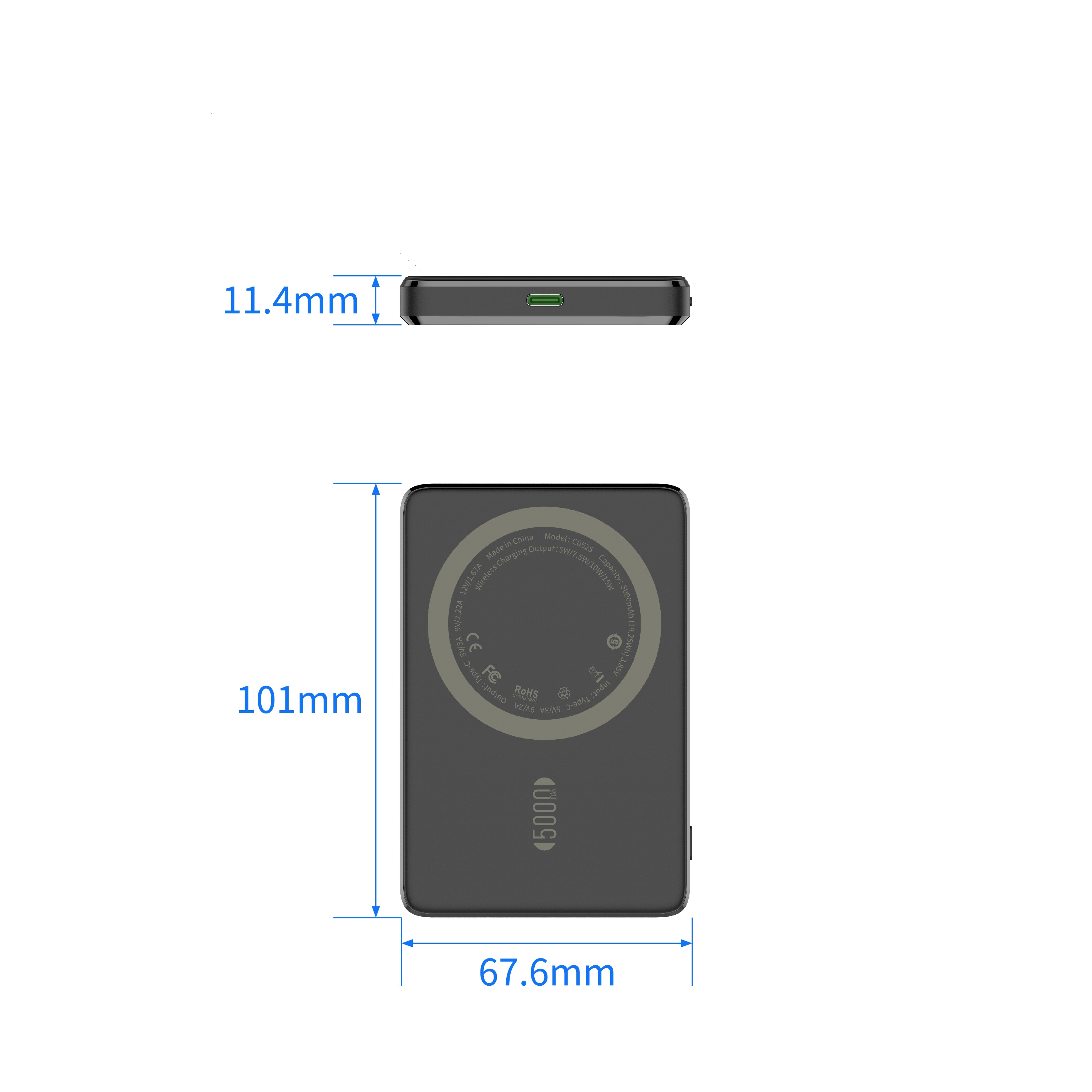 Ultratenká magnetická powerbanka s kapacitou 5000 mAh kombinuje pevné MagSafe uchycení, rychlé kabelové nabíjení přes USB-C a bezdrátový výkon až 15 W. Tloušťka pouhých 11,4 mm z ní dělá ideální doplněk pro každodenní použití. Kompaktní tělo z odolného ABS+PC poskytuje dostatek prostoru pro celoplošný UV potisk ve vysoké kvalitě. Powerbanka podporuje rychlé vstupy 5V/3A a 9V/2A, stejně jako výstupy 5V/3A, 9V/2,22A a 12V/1,67A pro efektivní nabíjení. Magnetické bezdrátové nabíjení s výkonem 5W / 7,5W / 10W / 15W zajišťuje spolehlivé uchycení k telefonu a pohodlné doplnění energie kdekoliv.