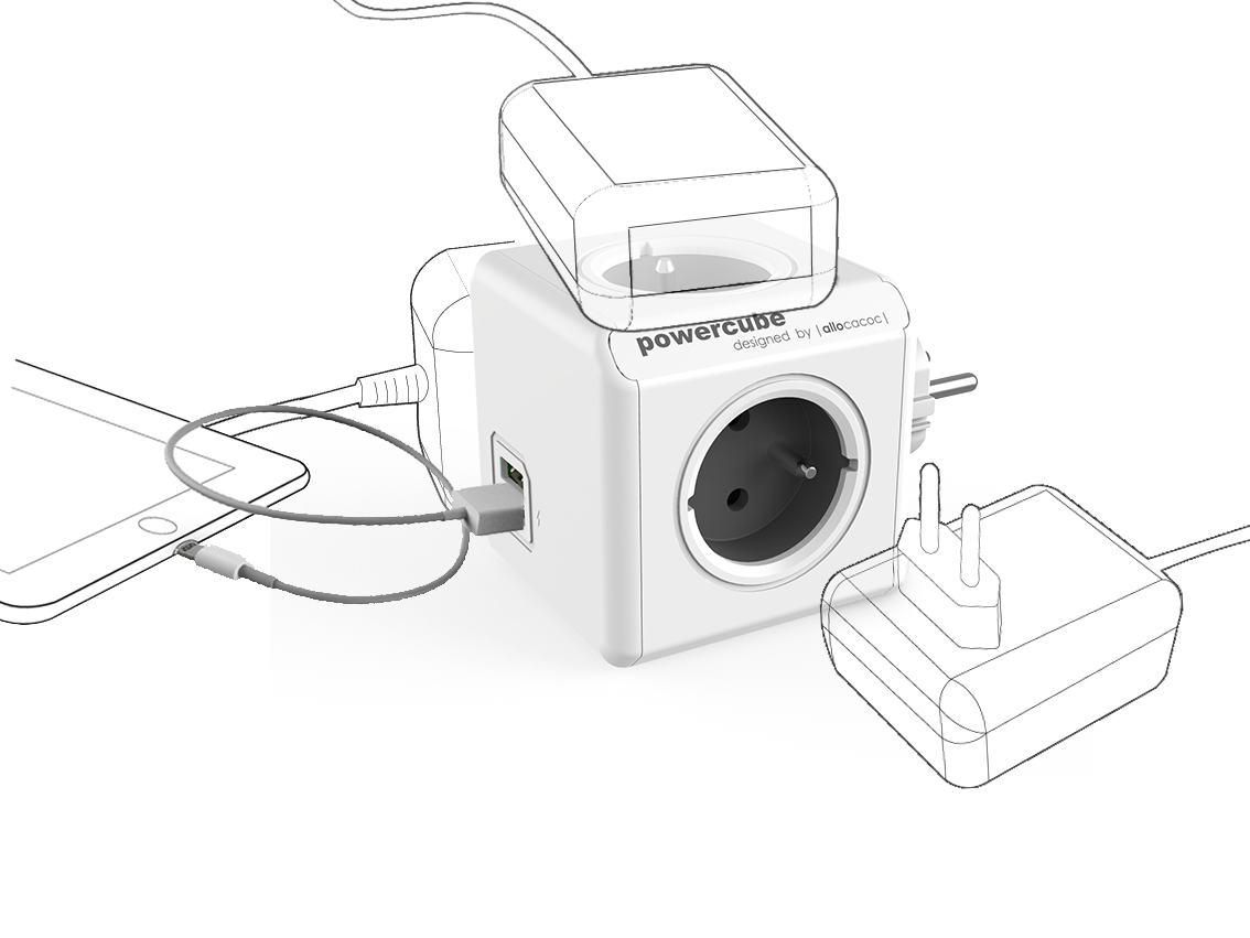 Často se dostáváme do situace, kdy nemáme v kanceláři, na poradě nebo doma po ruce elektrickou zásuvku. Pro nabití notebooku nebo chytrého telefonu se musíme dostat pod stůl, kde je zásuvka, nebo vytáhnout další prodlužovací kabel z jiné zásuvky. PowerCube Extended lze pohodlně připevnit na potřebné místo. Díky svému designu se stane ikonou na vašem stole.