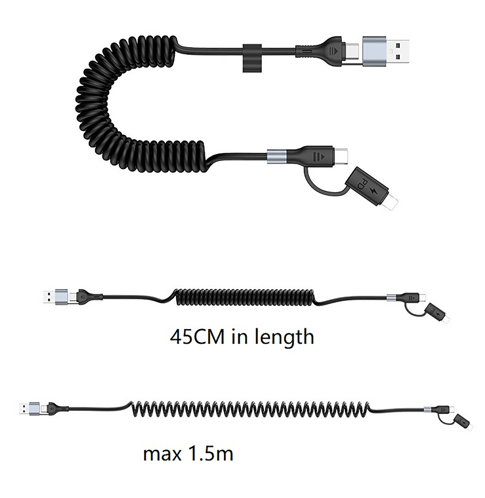 Multifunkční kabel 4v1 je ideálním řešením pro rychlé nabíjení a spolehlivý přenos dat. Díky výkonu 60 W a přenosu rychlosti až 480 Mbps podporuje efektivní nabíjení notebooků, mobilních telefonů a dalších zařízení s porty typu C a Lightning. Kabel je vybaven zabudovaným inteligentním čipem, který stabilně reguluje proud a chrání zařízení před přepětím. Vysoce pružný materiál TPU zajišťuje snadné natažení až na délku 1,5 m, aniž by docházelo k zamotávání. Tento kabel je perfektní volbou pro každodenní použití doma, v kanceláři i na cestách.