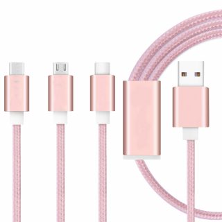 Univerzální kabel s konektory Micro USB (Android), USB-C a lightning (iPhone). Díky kovovým prvkům lze na kabel snadno gravírovat Vaše logo, maximální velikost loga je 25x8mm. Kabel je dostupný v černé, modré, stříbrné, zlaté a růžové barvě.